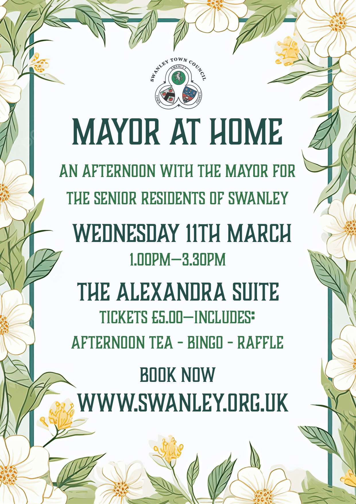 An afternoon with the Mayor of Swanley for the senior residents of Swanley! Includes: Afternoon Tea | Raffle | Bingo